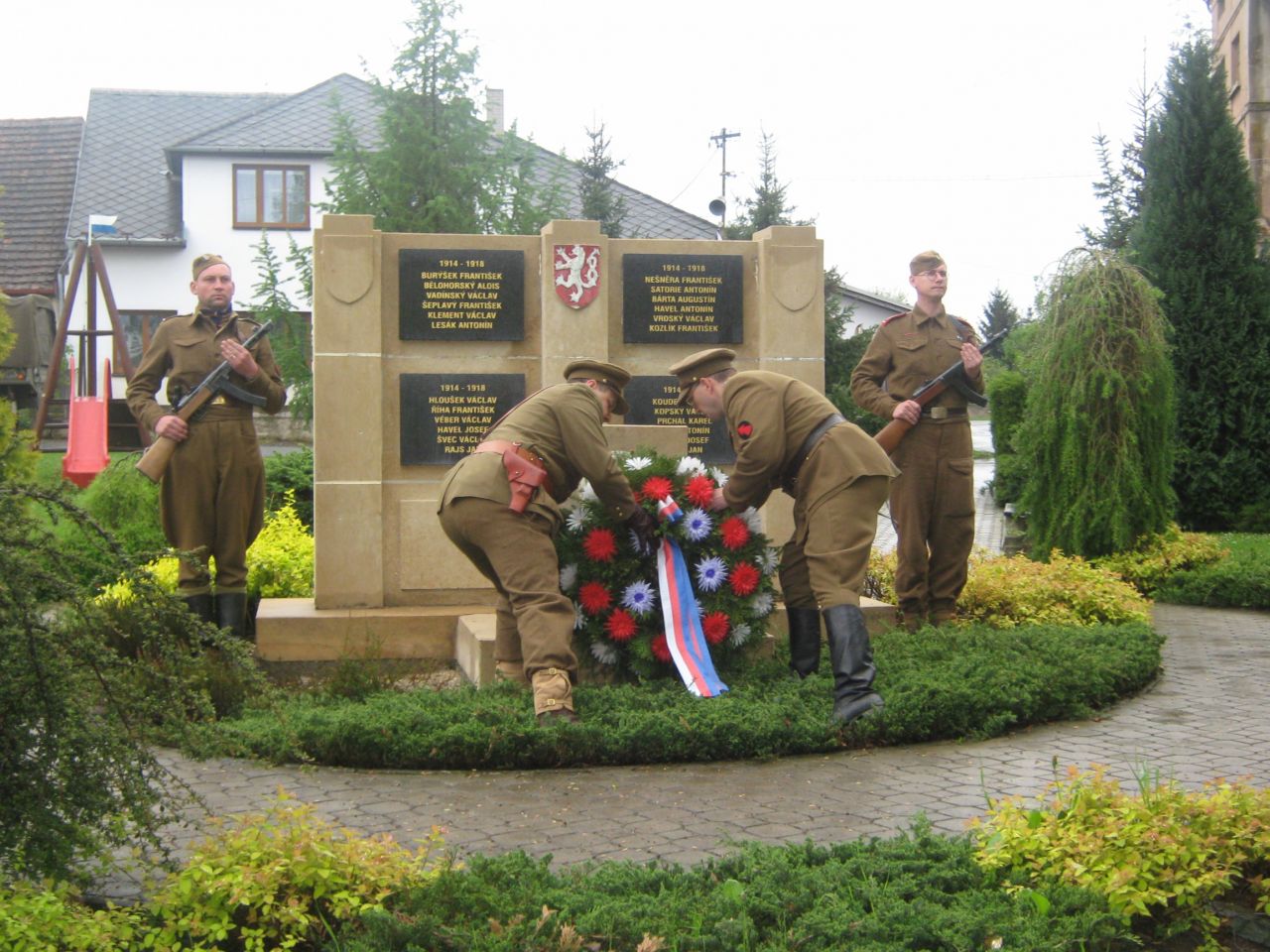 Na obecním úřadě pan Václav Průcha kontroloval plnění usnesení a nenapadlo ho nic jiného, než požádát NADKLUBOVÝ SPOLEK 3. PRAPORU ÚDERNÉHO o položení věnce k Pomníku padlých 1. a 2. světové války. Spolek žádost přijal a slavnostní akt položení věnce provedl. Na přiložených fotografiích můžete vidět jak vše probíhalo.
